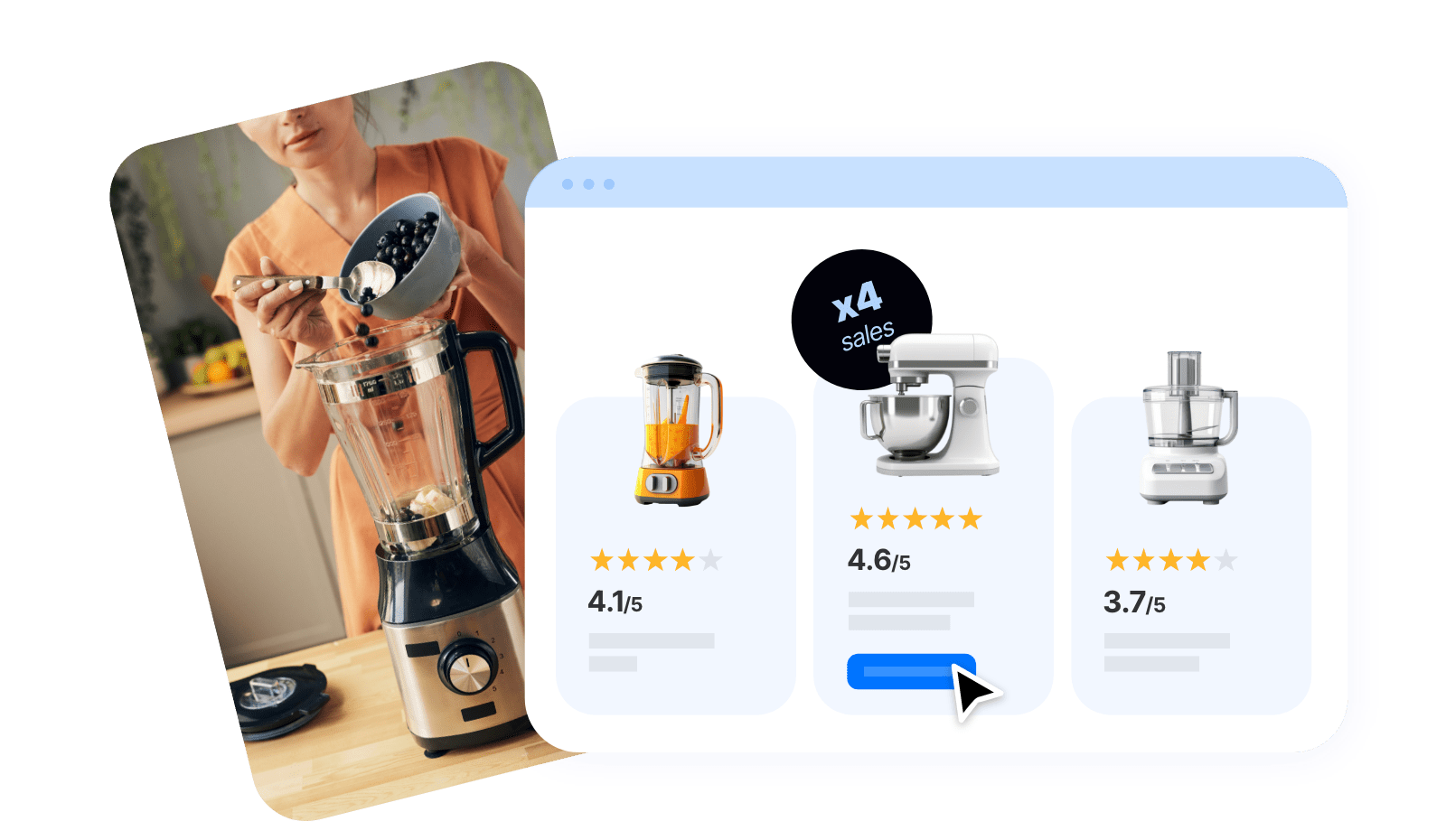 Las reseñas generan más ventas, tanto online como offline, a través de SEO o anuncios. Mejoran tu visibilidad (páginas destacadas por los motores de búsqueda) y generan más clics (las reseñas aportan confianza). El CTR de nuestros clientes ha aumentado en más del 50%*. ¿A qué esperas? ¡Potencia ya tus ventas!