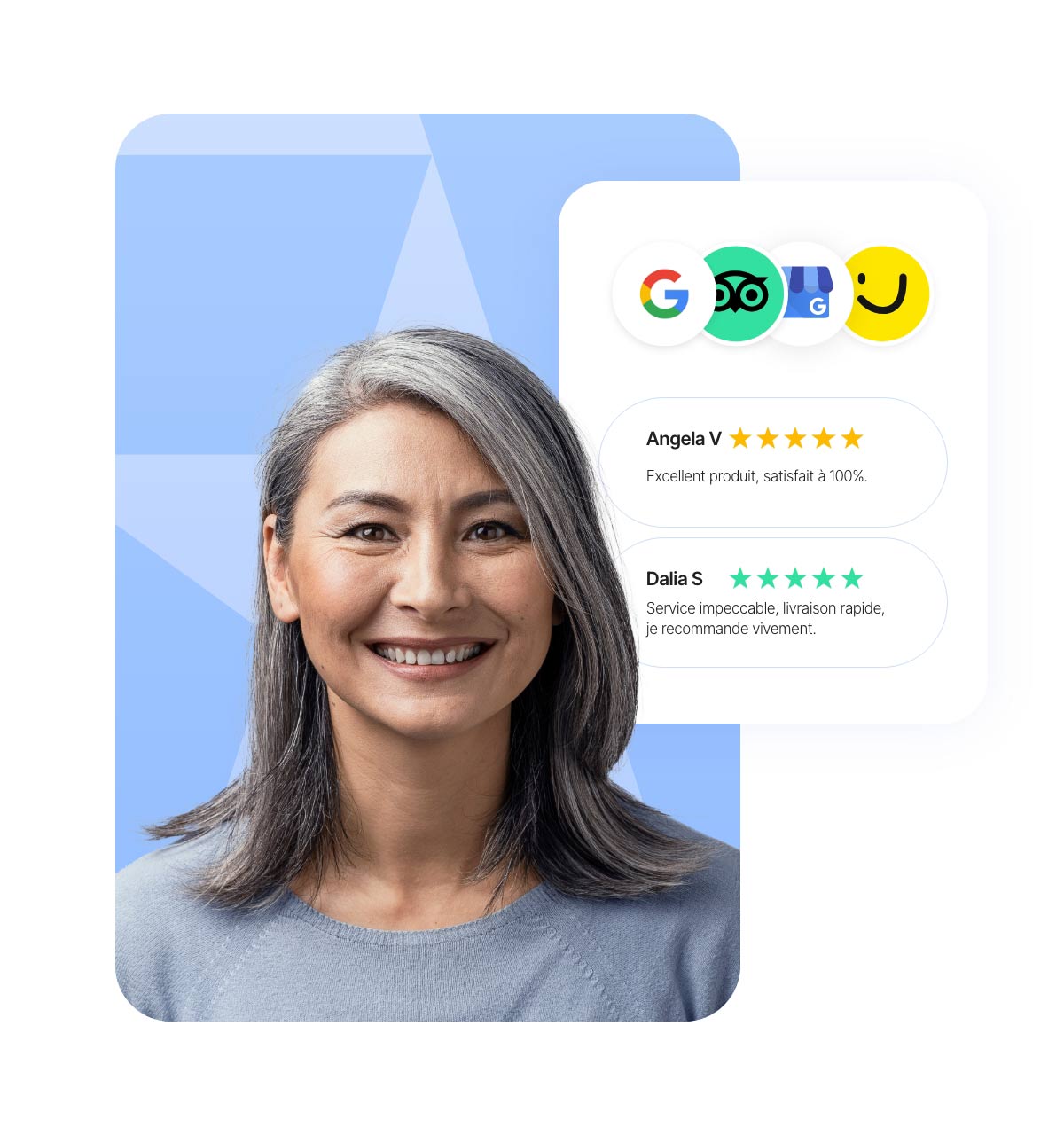 ¡Desbloquea el poder de las reseñas de clientes sin límites de ubicación! Optimiza la visibilidad de tus reseñas publicándolas en todos tus sitios web. y tradúcelas automáticamente para que no haya frontera que te pare.